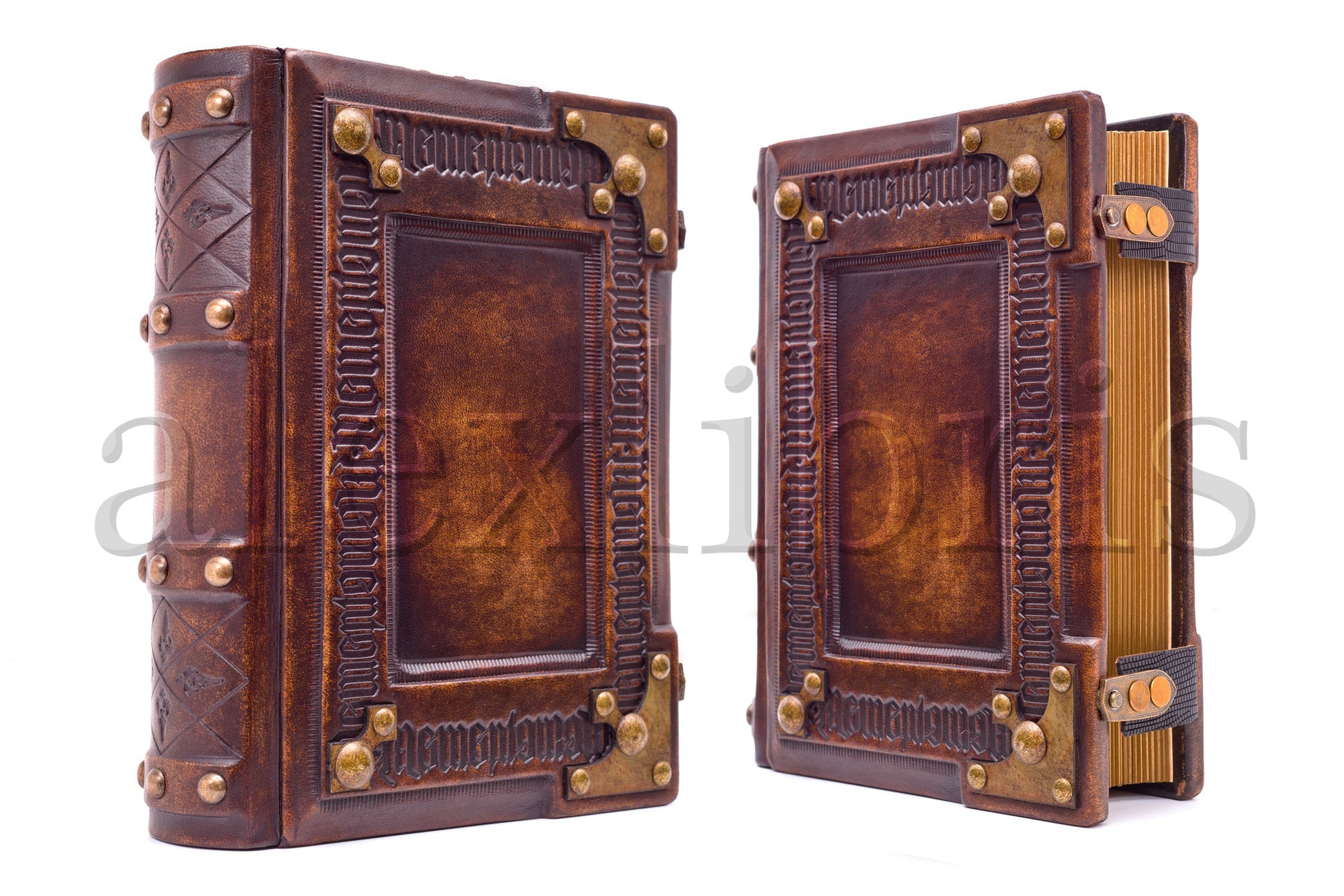 Measuring 8" x 10" (26 x 20 cm) with a substantial thickness of approximately 3 inches (8 cm), this journal features a captivating design. The front cover boasts a recessed central part adorned with an embossed frame, showcasing the timeless phrase "Memento Mori." Crafted from genuine Italian leather, each journal is skillfully hand-toned and aged to perfection, exuding an enchanting blend of elegance and mystique.